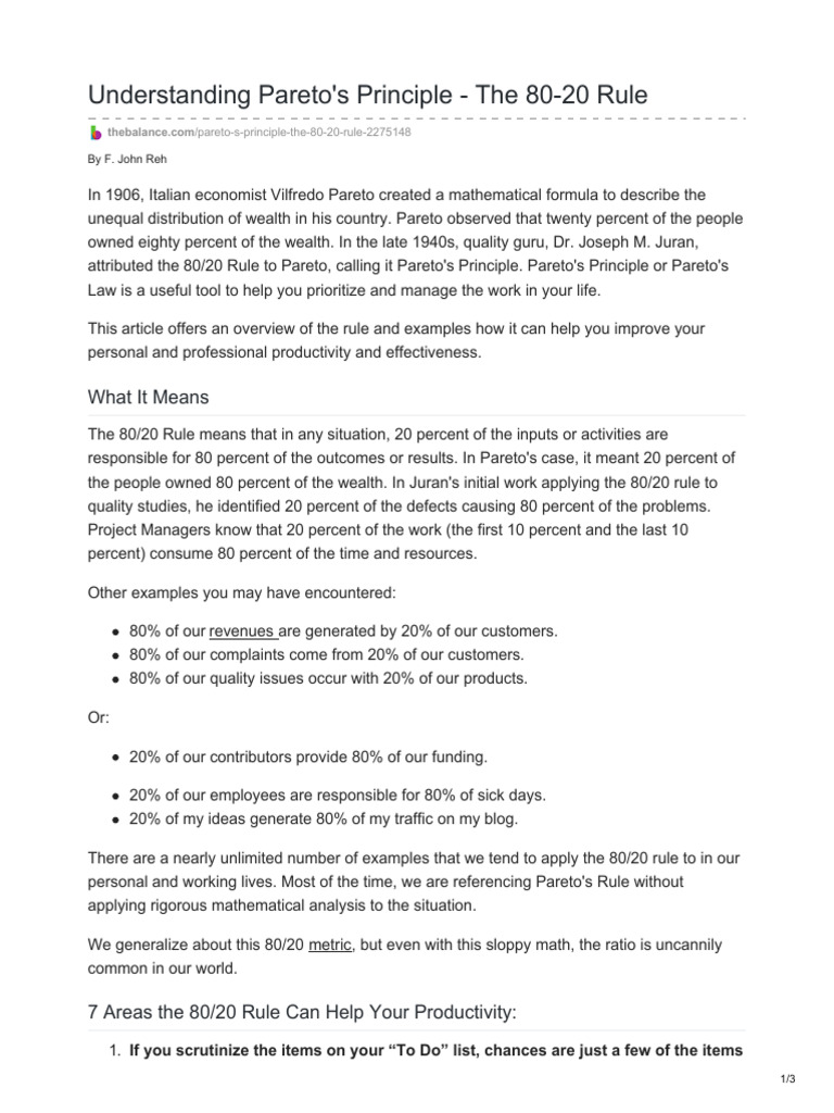 The 80 20 Rule Paretos Principle PDF