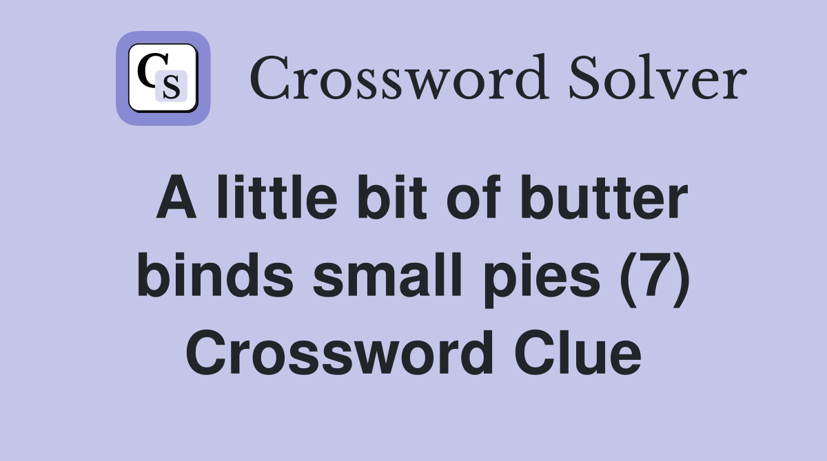 A little bit of butter binds small pies (7) Crossword Clue Answers