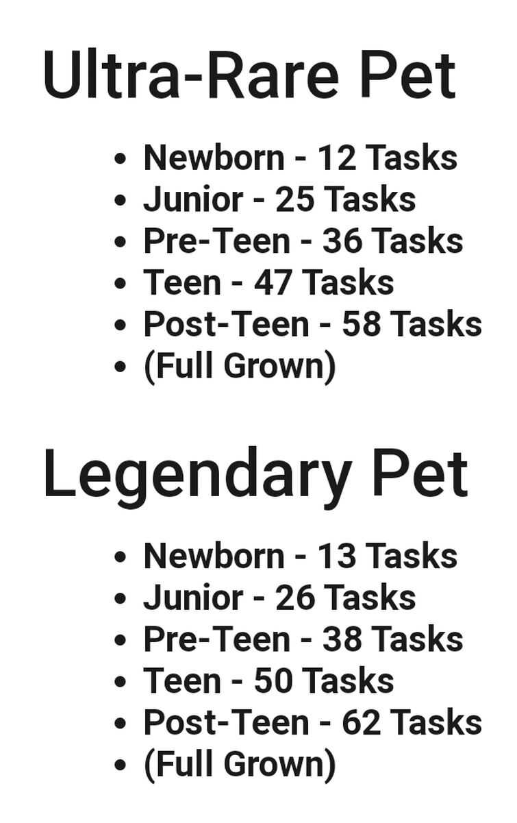 Adopt Me Age Guide - Here is a list of the number. I found out the schedule for adopt me. These are all the tasks in adopt me each day. The number of tasks increases as the pets get rarer so it requires an incremented amount of work to age them.