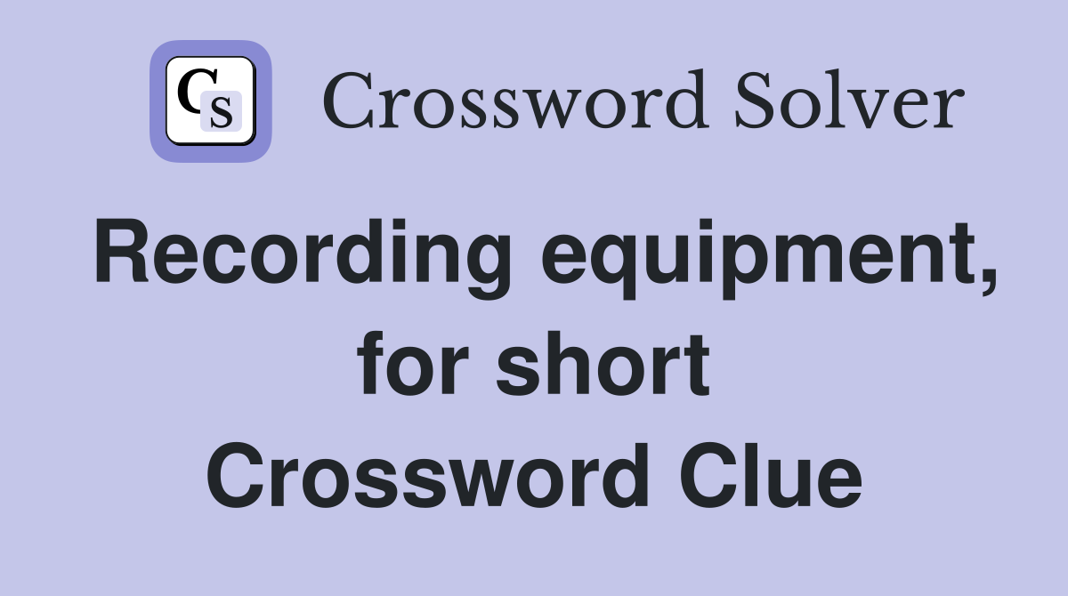 Recording equipment, for short Crossword Clue Answers Crossword Solver