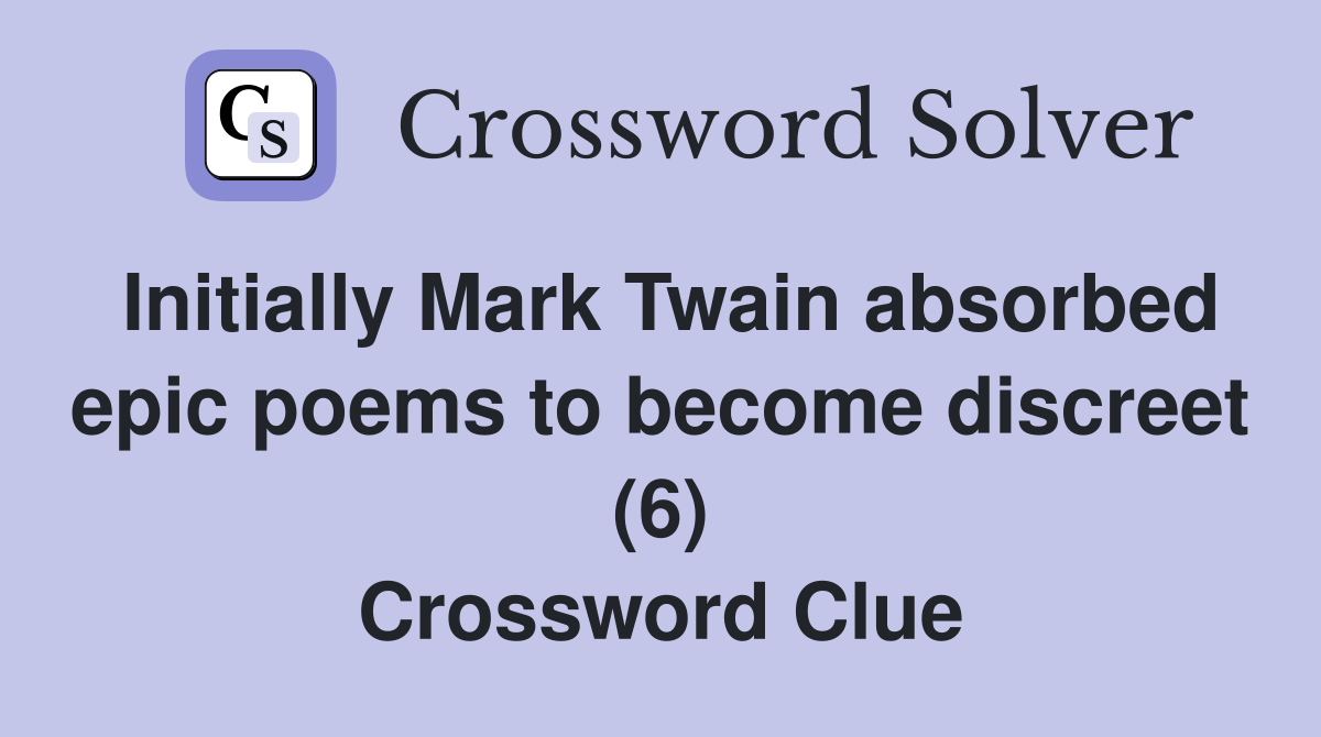We have found 40 possible answers for. The crossword solver finds answers to classic. Here is the answer for the crossword clue always, in poetry last seen in telegraph cross atlantic puzzle. Solve your always, in poems. The crossword solver found 30 answers to always, in poems, 3 letters crossword clue.