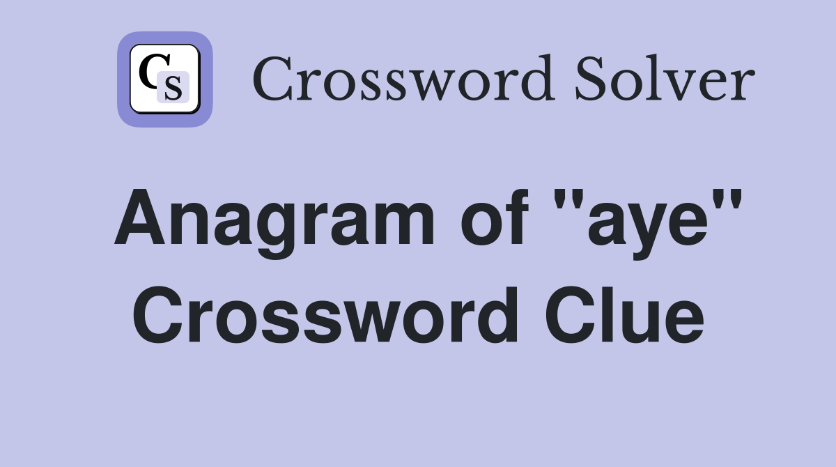 To go back to the main post you can click in this link and it will redirect you to. Here is the answer for the crossword clue apt anagram of aye. We found the following answers for:
