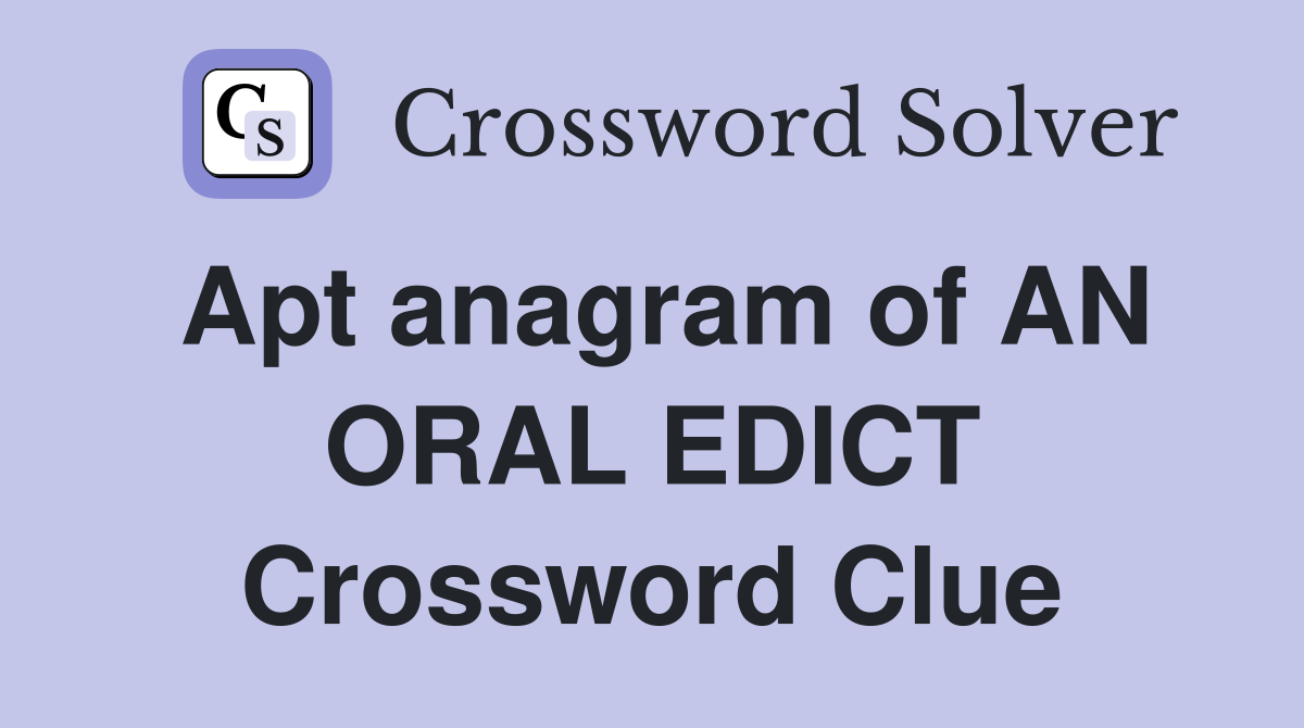 Apt anagram of AN ORAL EDICT Crossword Clue Answers Crossword Solver