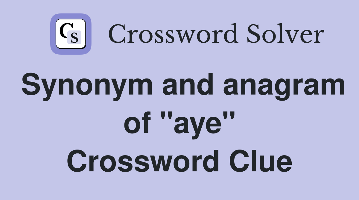 Anagram of "aye" Crossword Clue Answers Crossword Solver