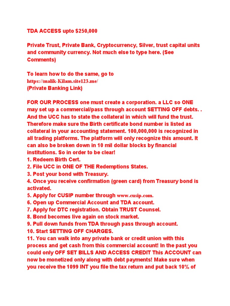 TDA Birth Certificate bond instructions Uniform Commercial Code
