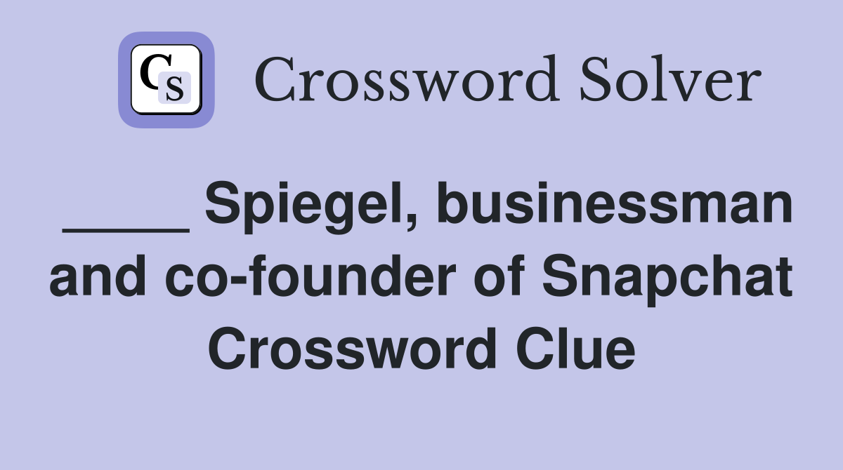Spiegel, businessman and cofounder of Snapchat Crossword Clue