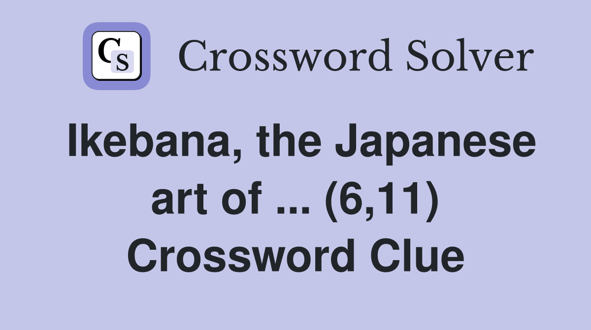 There are related clues (shown below). Our crossword solver found 9 results for the crossword clue bonsai and ikebana. Bonsai and ikebana is a crossword puzzle clue that we have spotted 3 times. Ny times, daily celebrity, telegraph, la times and.