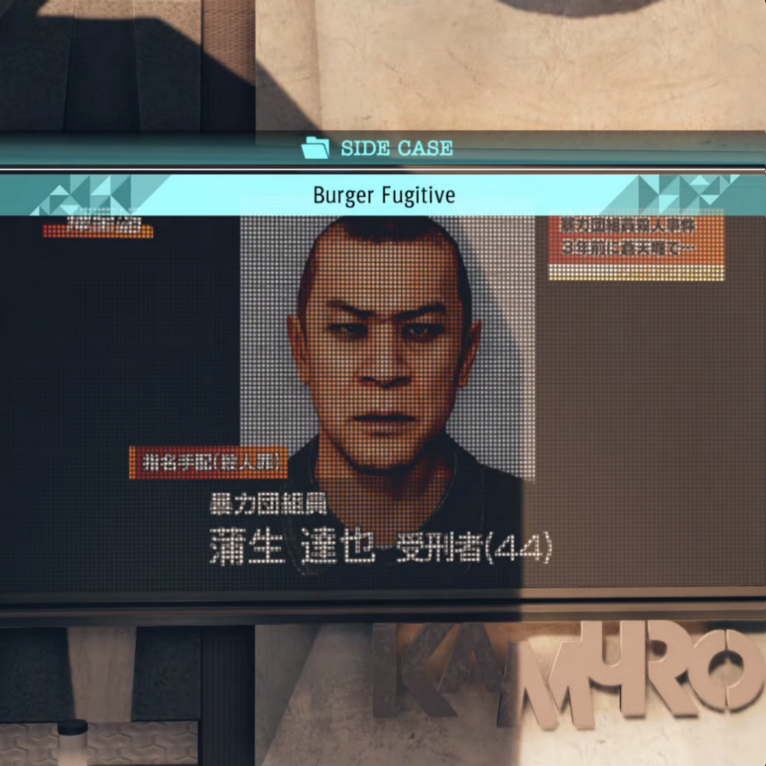 Burger Fugitive Search For Gamo - On taihei boulevard (at the beginning of chapter 8 an icon appears on the map) objective (s): This judgment (judge eyes) walkthrough guide will show you how to find & defeat tatsuya gamo during the side case. There is a juicy reward of 1,200,000 yen if you manage to find him and that is great, right?