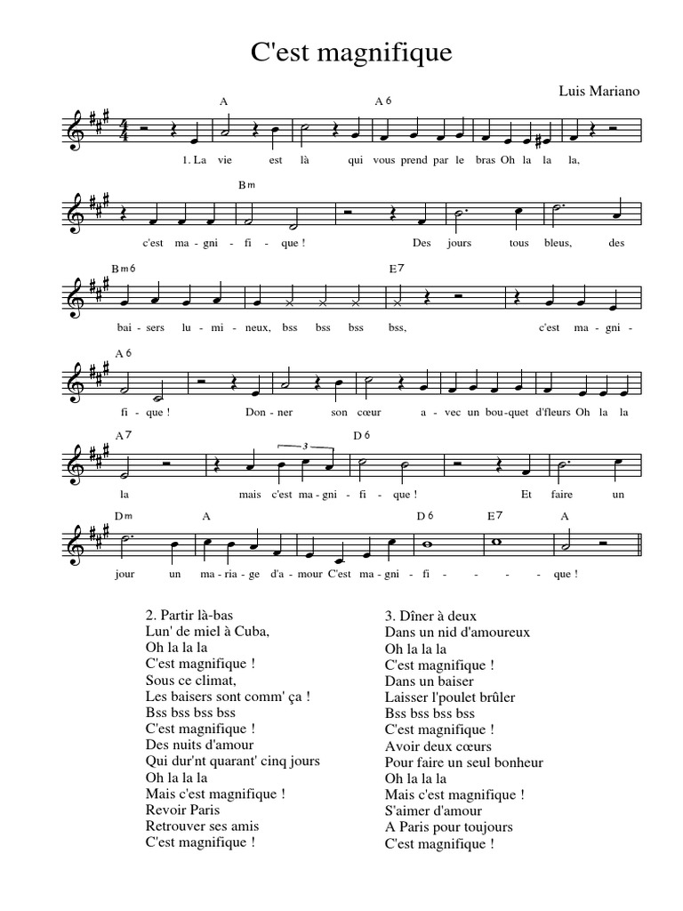 C'est Magnifique by Cole Porter Piano, Vocal, Guitar Digital Sheet