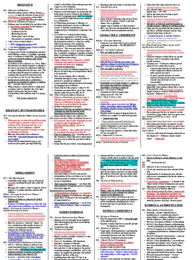 Maryland Rules Of Evidence Cheat Sheet