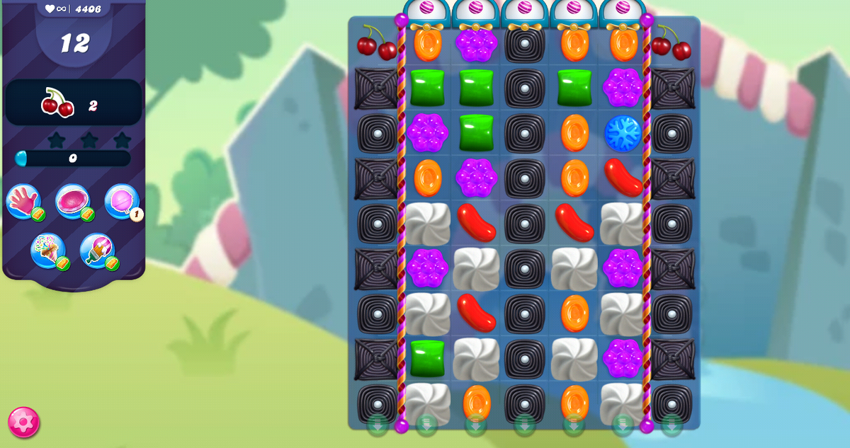 The Goal Of Candy Crush Level 4406 Is To Collect 2 Cherries In 12 Moves.