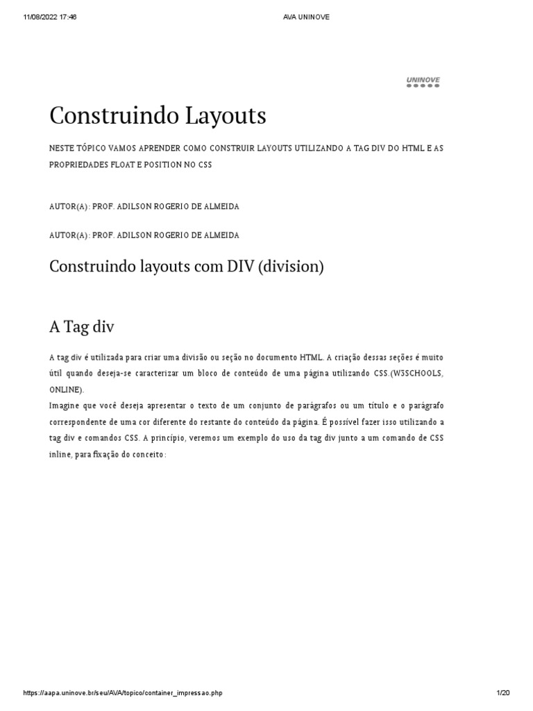 Ava Uninove 7 PDF Html Imagem