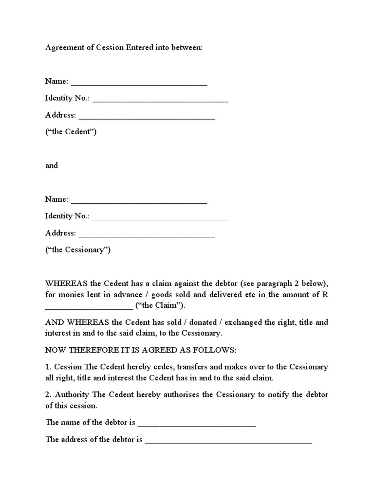 Cession Agreement Template Free - Jbcc provides free forms for pba, mwa and sswc agreements, which are standardised and equitable for building projects in africa. Copy of the authority/power of attorney to act on behalf of the. Please note that the following documentation must accompany this cession form.