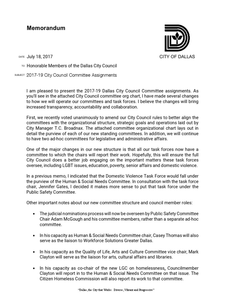 New Dallas City Council Committee Assignments Reflect Johnson’s