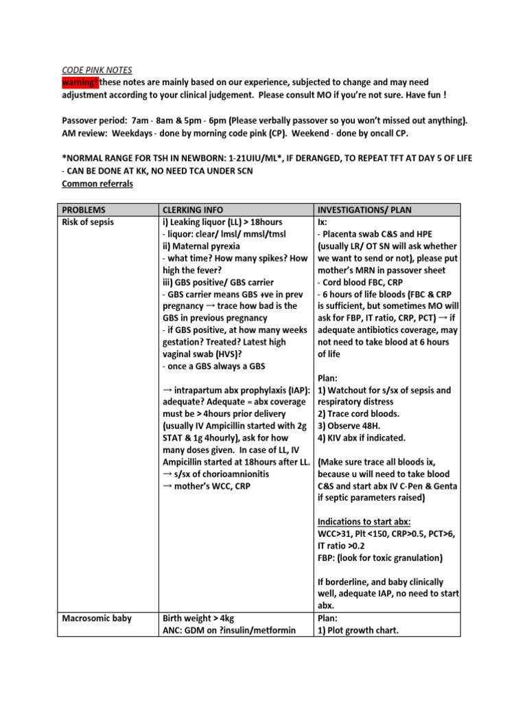 Paeds Code Pink Cheatcode PDF Preterm Birth Childbirth