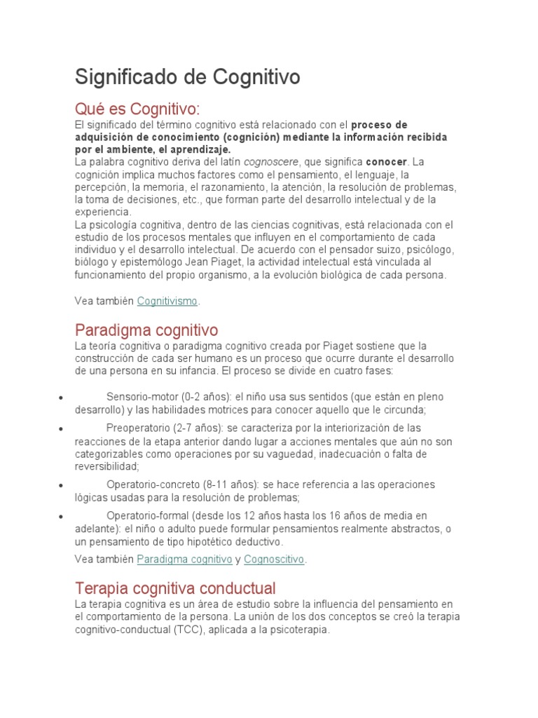 Significado de Cognitivo PDF Psicología cognitiva Desarrollo