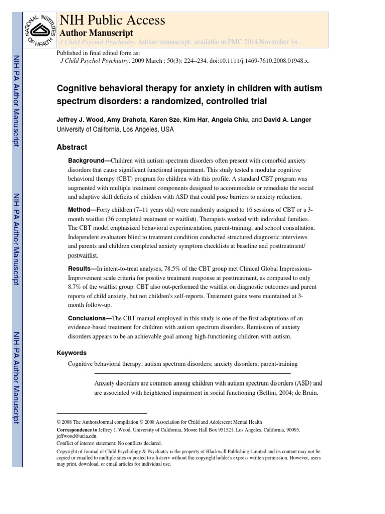 Cognitive Behavioral Therapy for Anxiety in Children With Autism