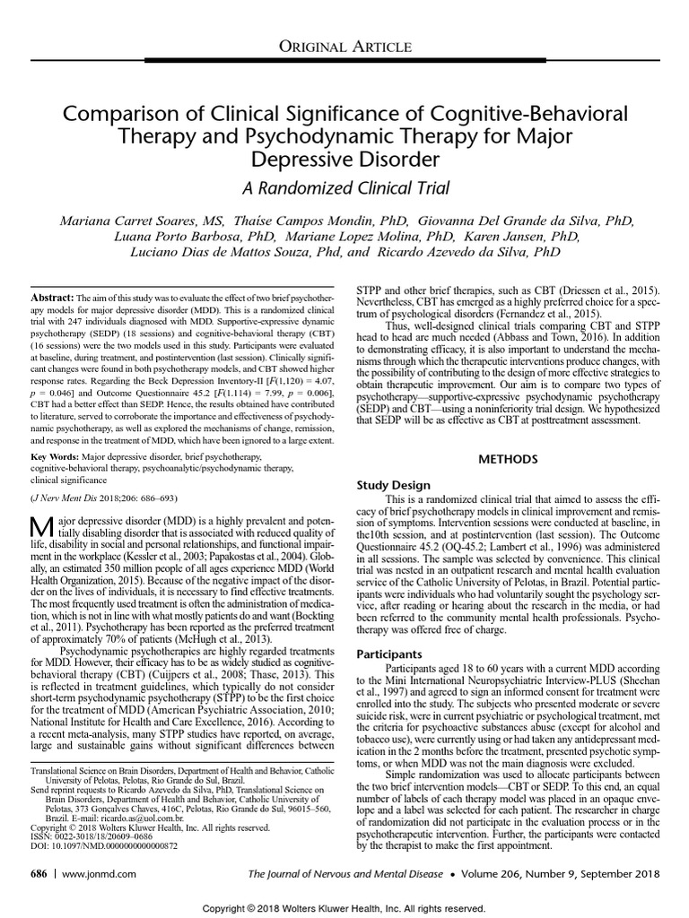 Cognitive behavioral therapy (cbt) is one of the. We report the current best estimate of the. The purpose of this study is to understand how. It was developed in the 1970s by. Previously untreated adults with mdd.