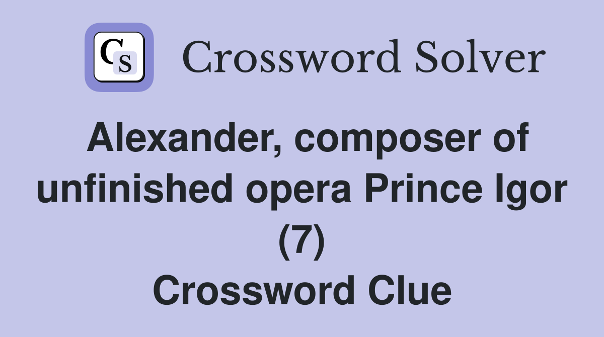 Alexander, composer of unfinished opera Prince Igor (7) Crossword