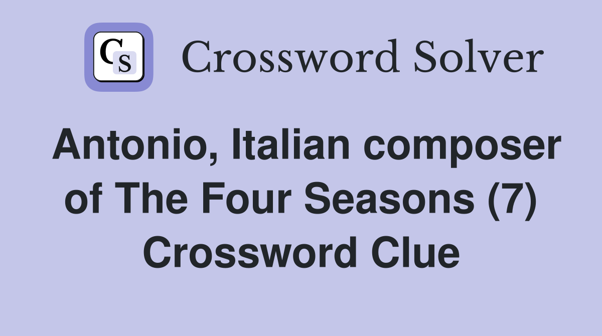 Antonio, Italian composer of The Four Seasons (7) Crossword Clue