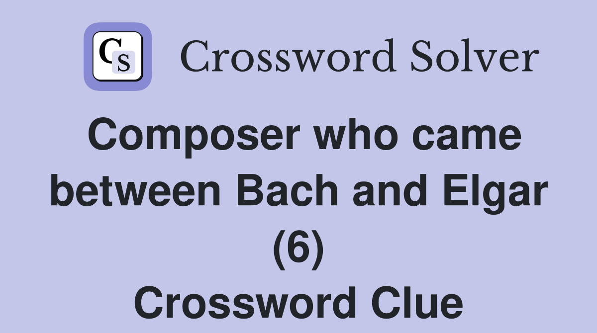 Composer who came between Bach and Elgar (6) Crossword Clue Answers