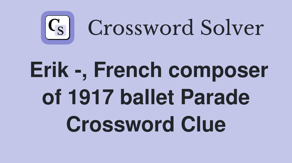 Erik , French composer of 1917 ballet Parade Crossword Clue Answers