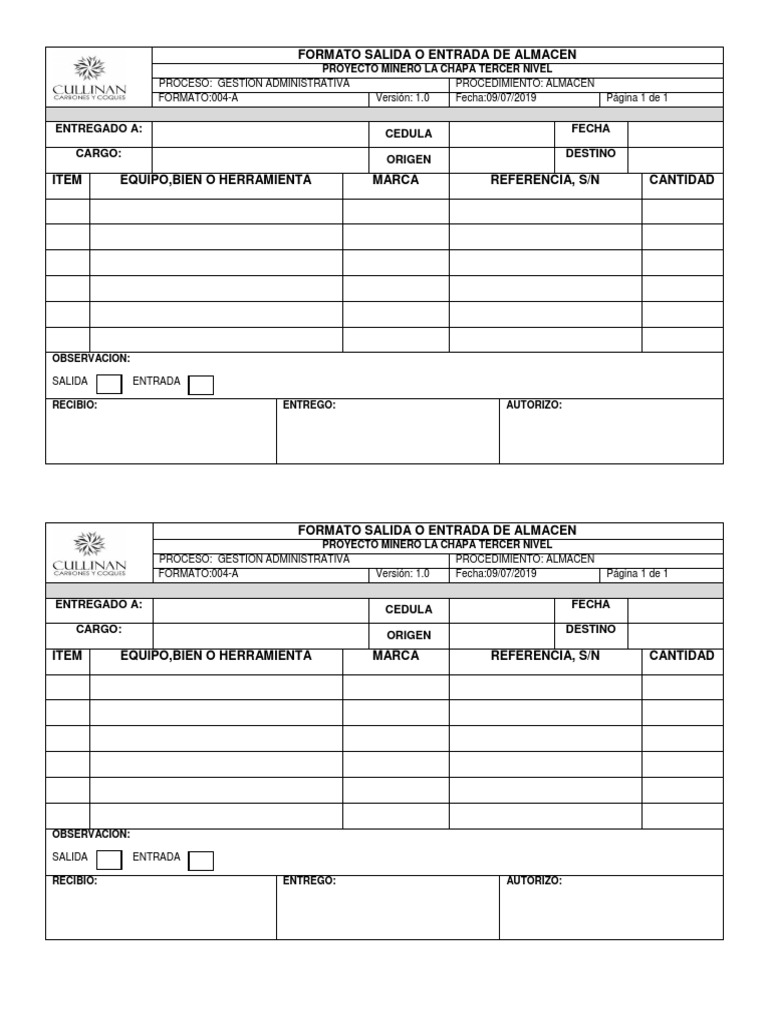 50 Formato Salida De Almacen Excel