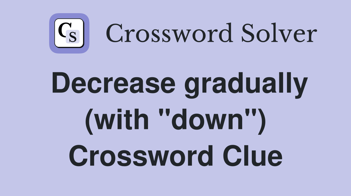 The term 'decrease gradually' can be described by four different crossword solutions: Here is the answer for the crossword clue gradually decrease. We have found 40 possible answers for this. Our crossword solver found 10 results for the crossword clue gradually decrease.