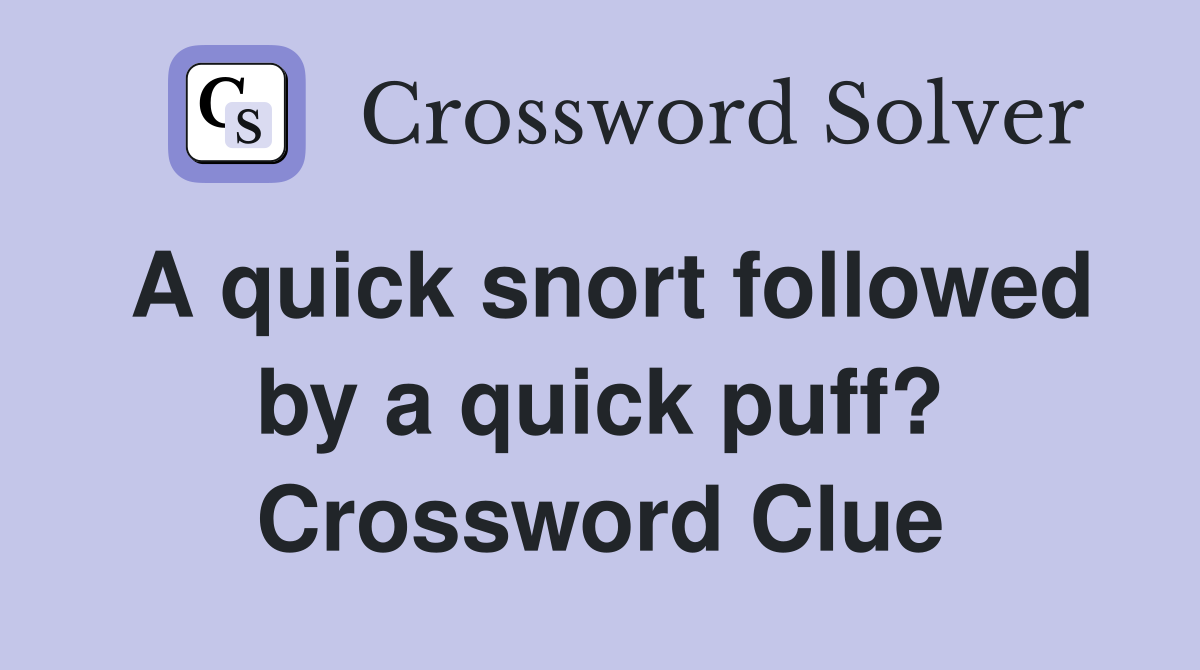 A quick snort followed by a quick puff? Crossword Clue Answers