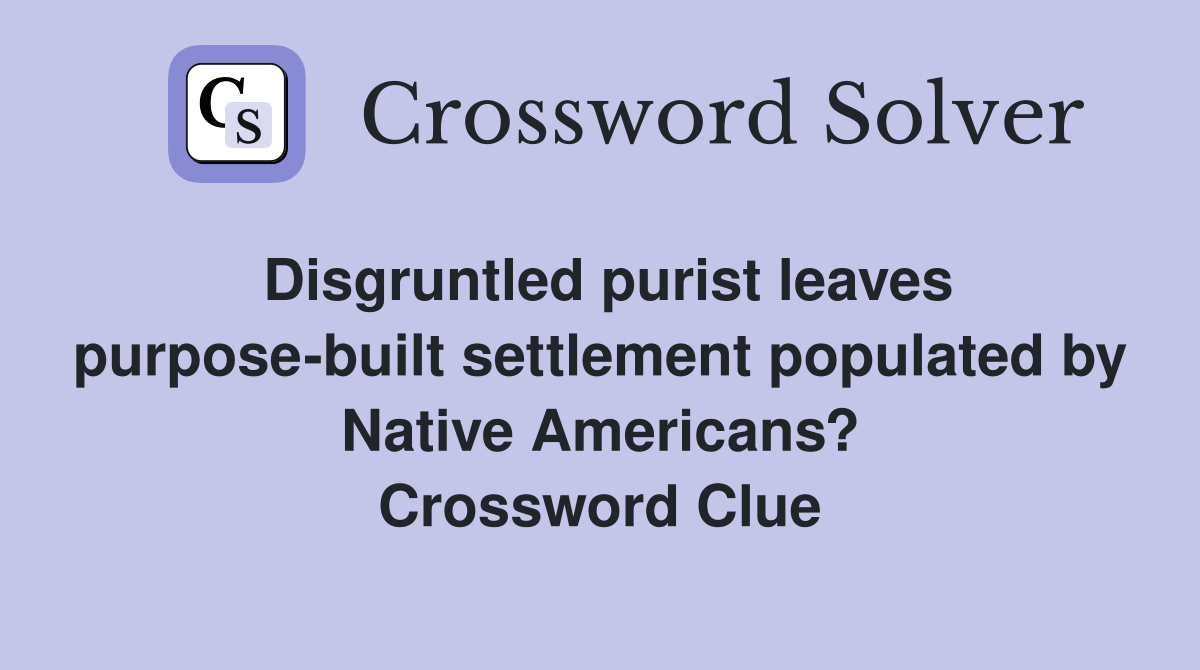 Disgruntled purist leaves purposebuilt settlement populated by Native