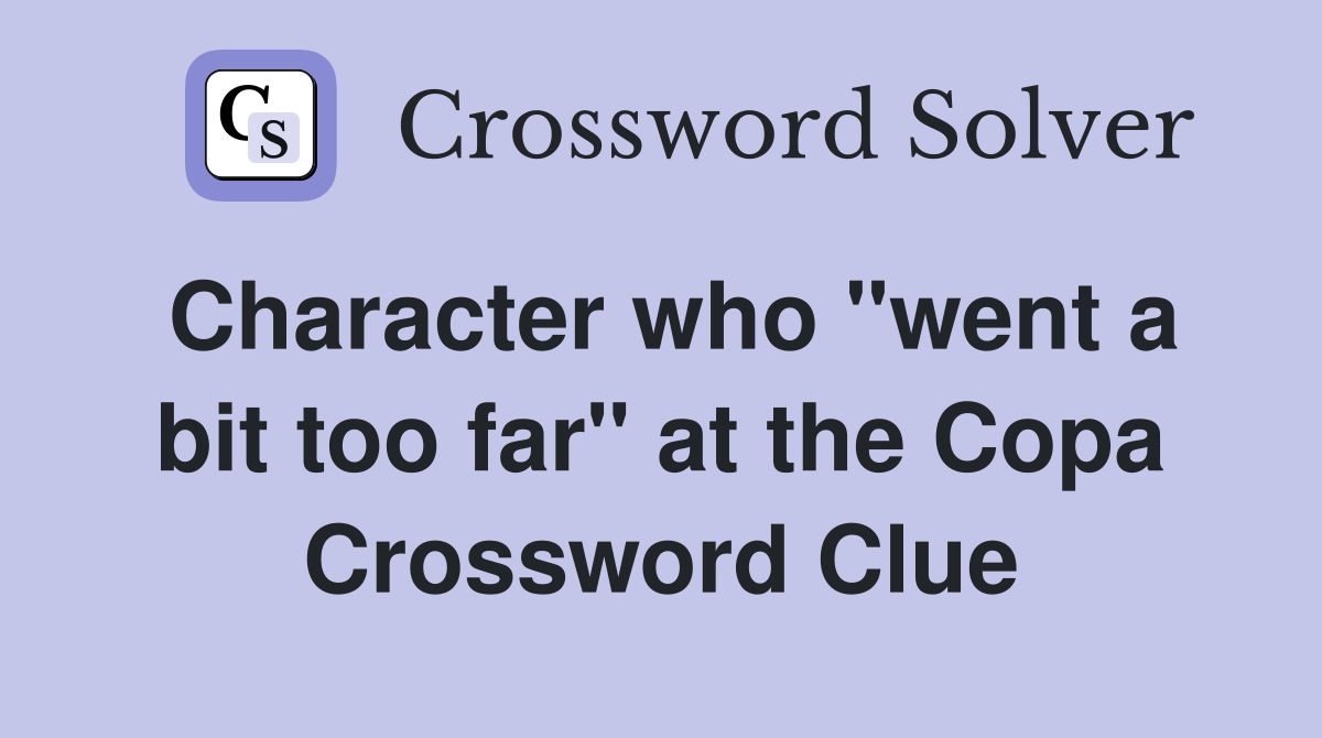 Character who "went a bit too far" at the Copa Crossword Clue Answers