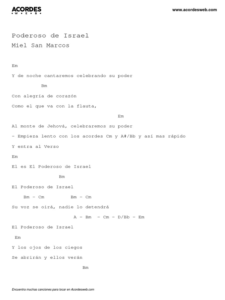 El poderoso de israel | eres todo poderosomiel san marcos feat marcos barrientos/ pentecostes 2017 | medley 2 | pentecostés | el poderoso de israelft. About press copyright contact us creators advertise developers terms privacy policy & safety how youtube works test new. Letra y acordes de guitarra. Acordes de poderoso de israel, miel san marcos: