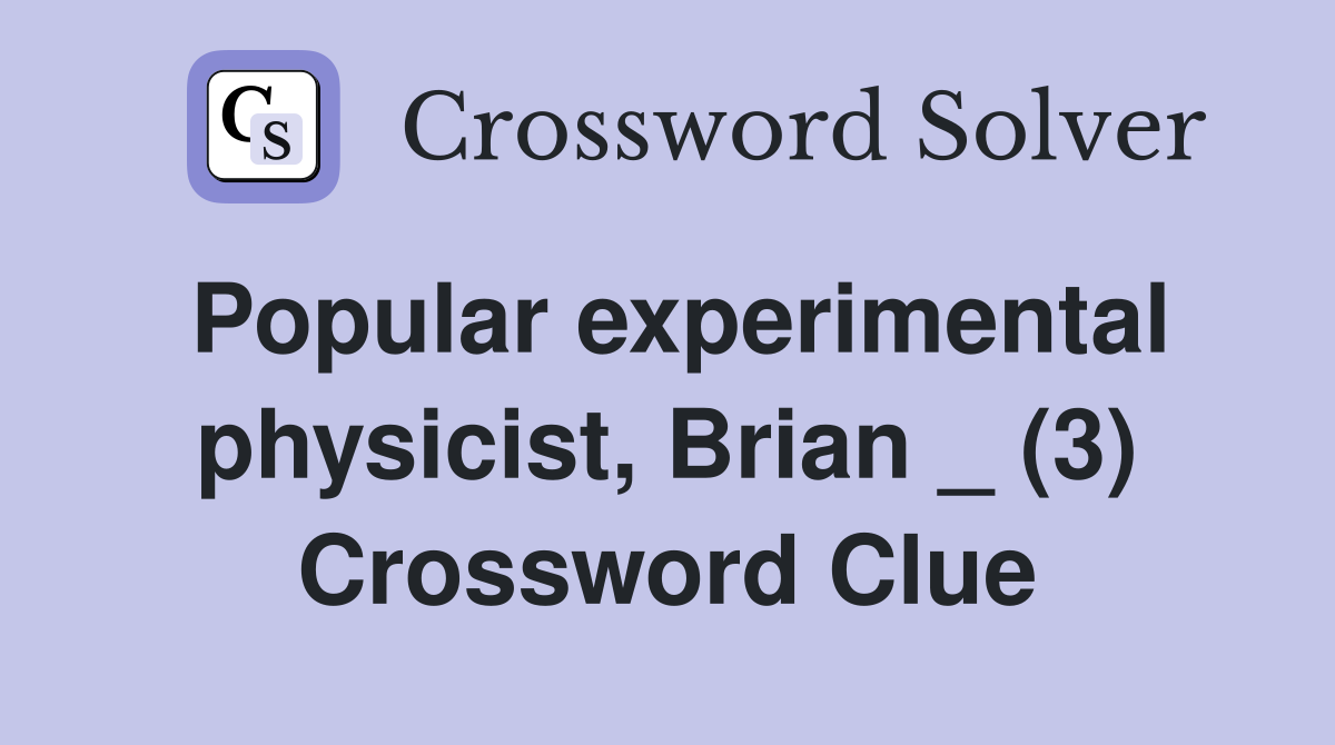 Popular experimental physicist, Brian _ (3) Crossword Clue Answers