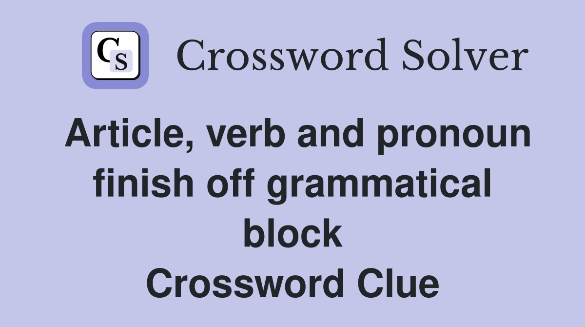 Article, verb and pronoun finish off grammatical block Crossword Clue