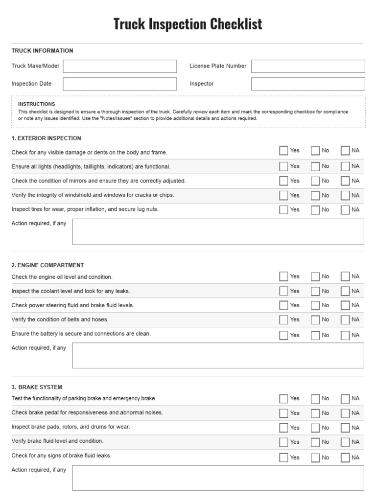 Top 5 Truck Inspection Form Templates free to download in PDF format