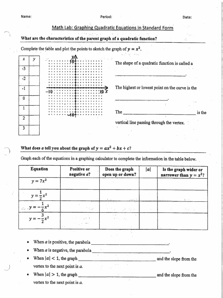 Graphing Quadratics Standard Form Worksheet