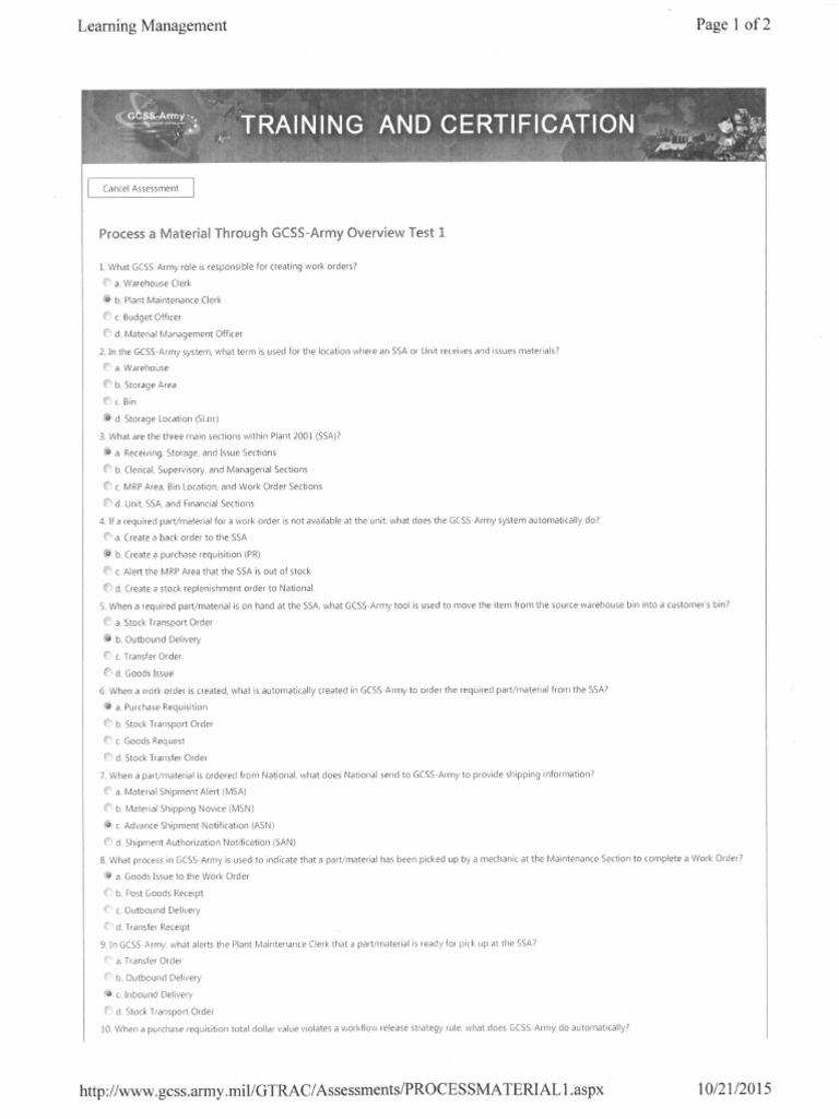 A. 07 PROCESS A MATERIAL THROUGH GCSSARMY OVERVIEW [WBT] PDF