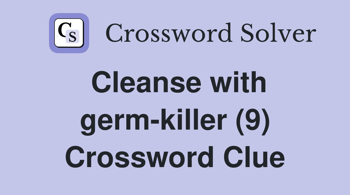 Cleanse with germkiller (9) Crossword Clue Answers Crossword Solver