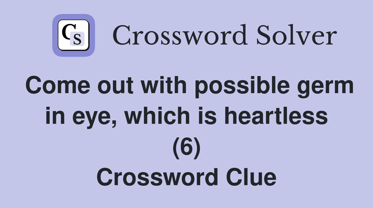 Come out with possible germ in eye, which is heartless (6) Crossword