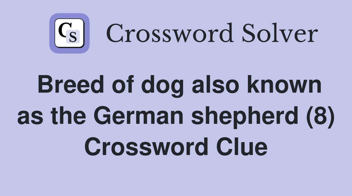 Here is the answer for the crossword clue german shepherds. German shepherd is a crossword puzzle clue that we have spotted 9 times. We know 2 solutions for: The most common solution for the crossword clue german shepherd are alsatian with 8 letters. We have found 40 possible answers for this clue in our database.
