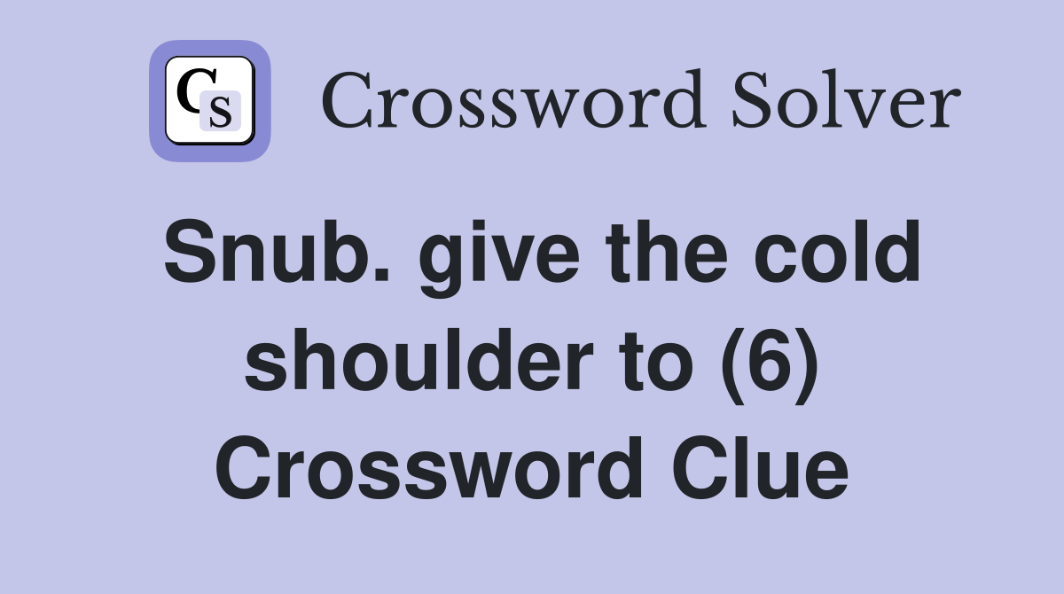 We have found 40 possible answers for. The crossword solver found 30 answers to give the cold shoulder to, 8 letters crossword clue. There are related clues (shown below). Here are the possible solutions for give the cold shoulder to clue. The crossword solver finds answers to classic.