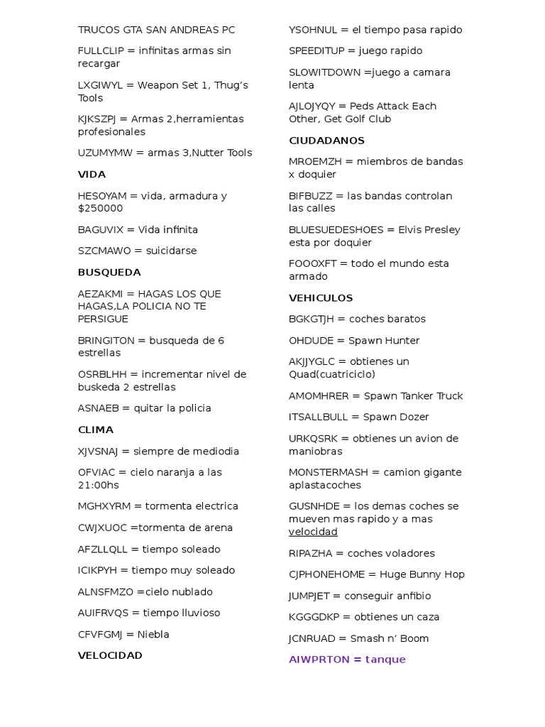 Trucos Gta San Andreas Pc Archivo de computadora Conflicto armado