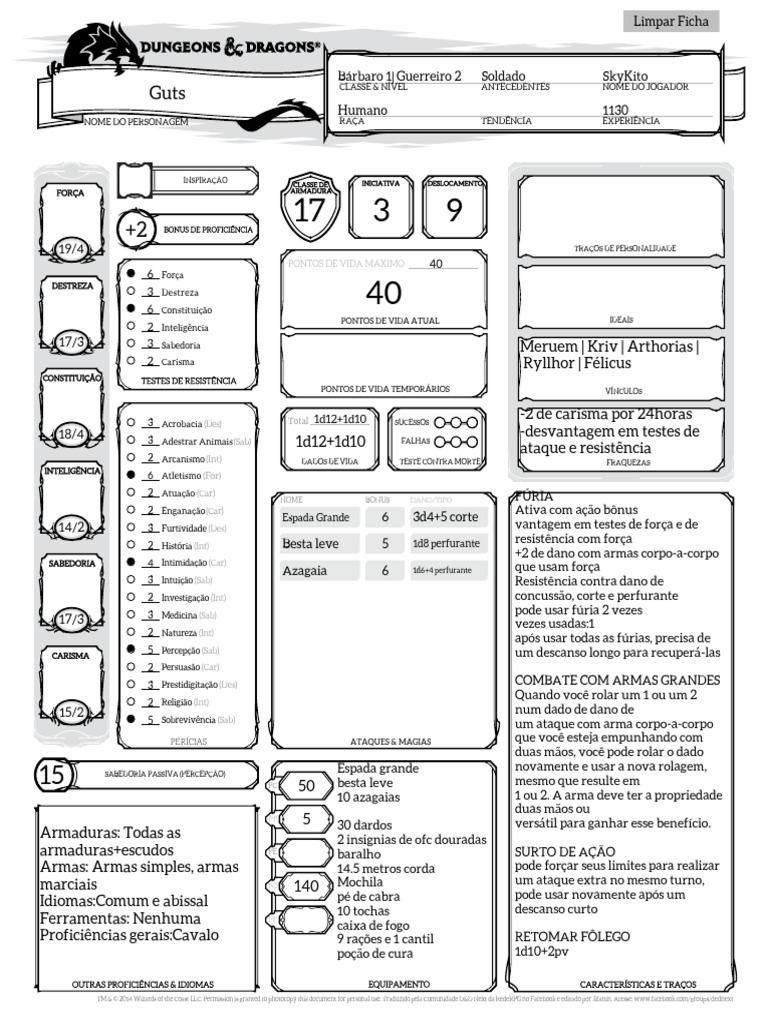 Ficha Guts Download grátis PDF Dungeons & Dragons (jogo)