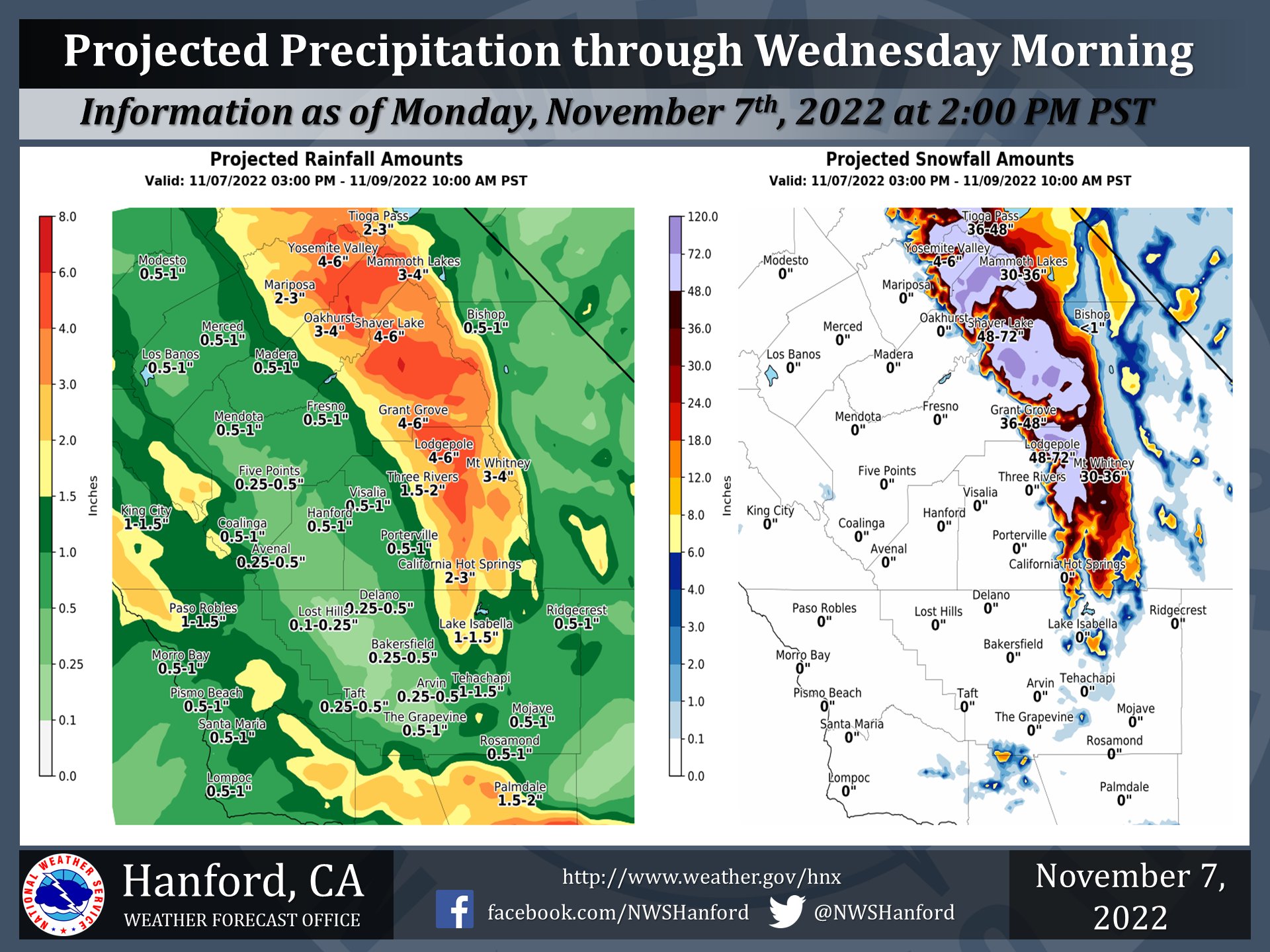 NWS Hanford on Twitter "Here's the updated rain and snowfall