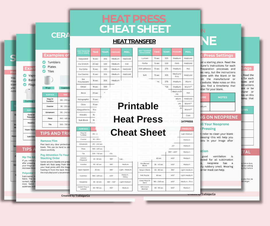 Sublimation Heat Press Cheat Sheet Printable
