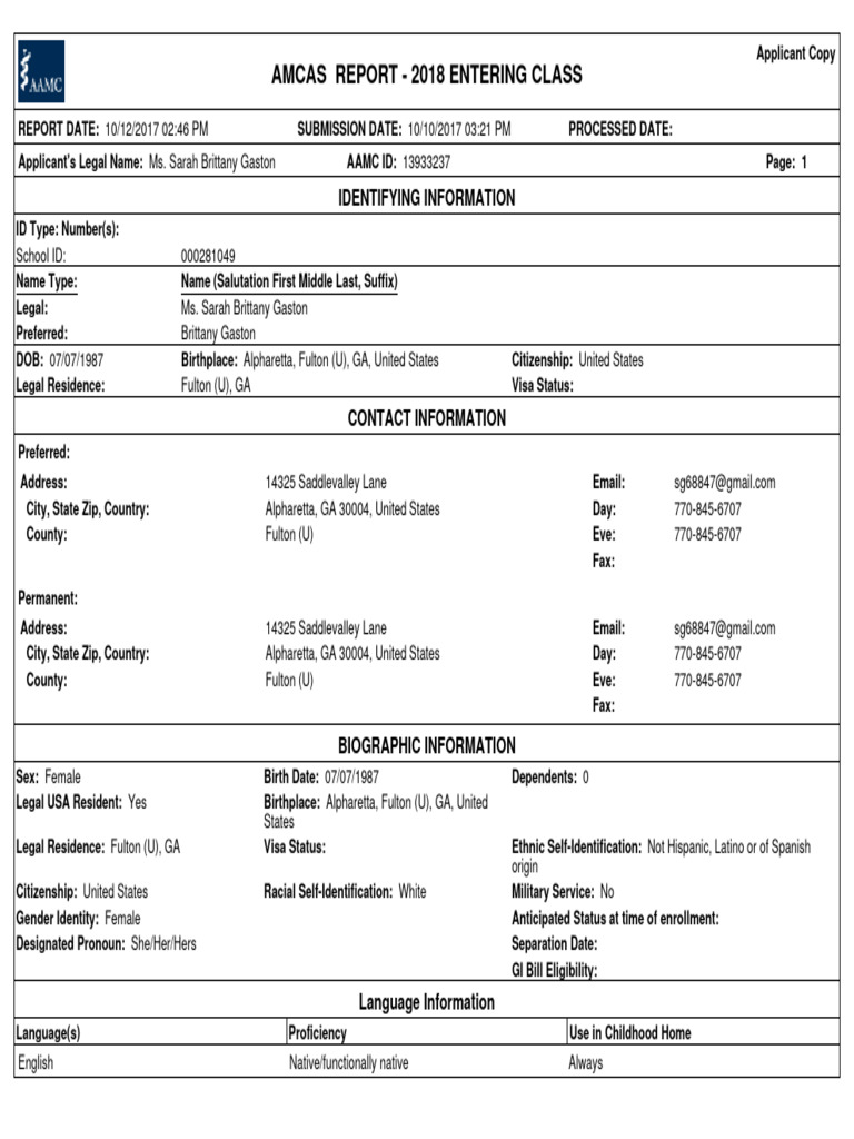 2018 AMCAS Application Download Free PDF Medical College Admission Test