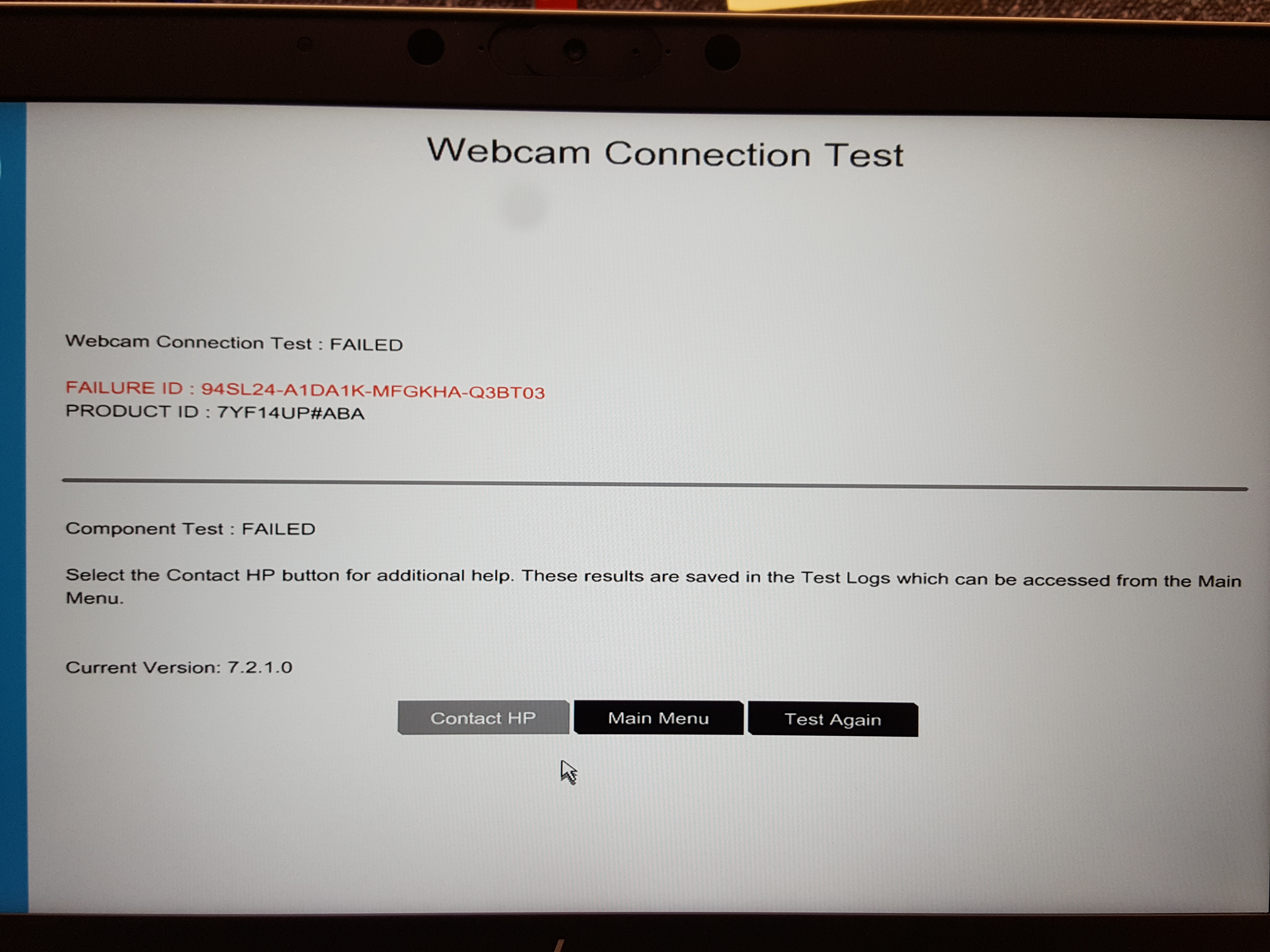 HP Elitebook 840 G6 HardwareDiagnosticsWebcam Failure ID HP