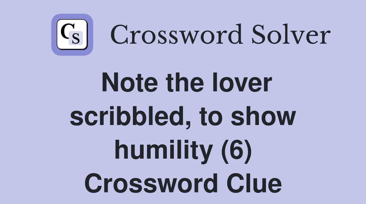 Note the lover scribbled, to show humility (6) Crossword Clue Answers
