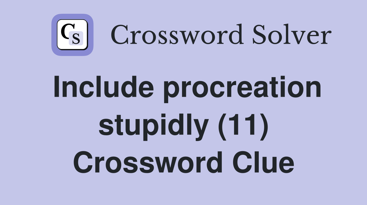 Include procreation stupidly (11) Crossword Clue Answers Crossword