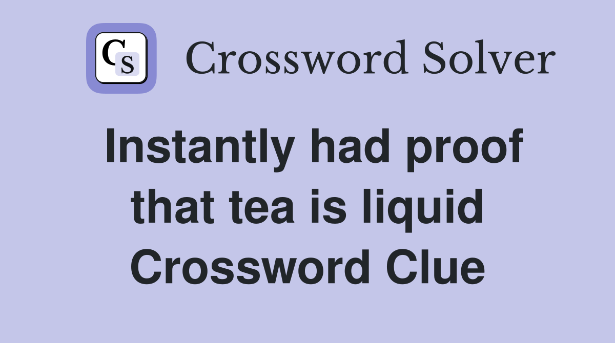 Instantly had proof that tea is liquid Crossword Clue Answers